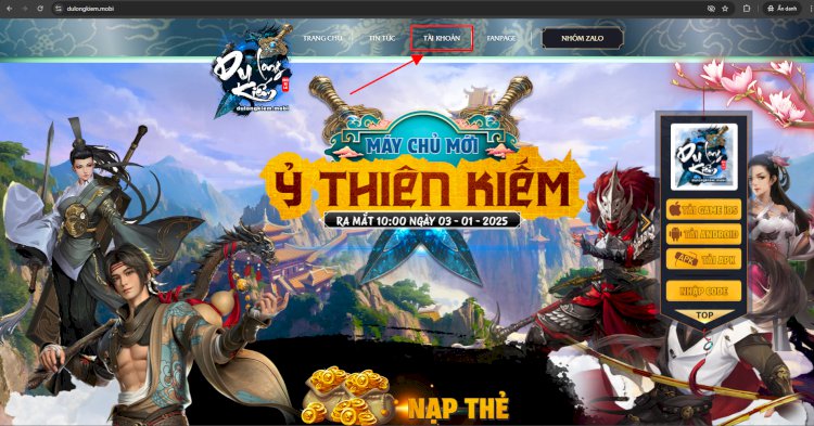 Truy cập trang chủ https://dulongkiem.mobi/ chọn Tài Khoản để nạp SWKoin