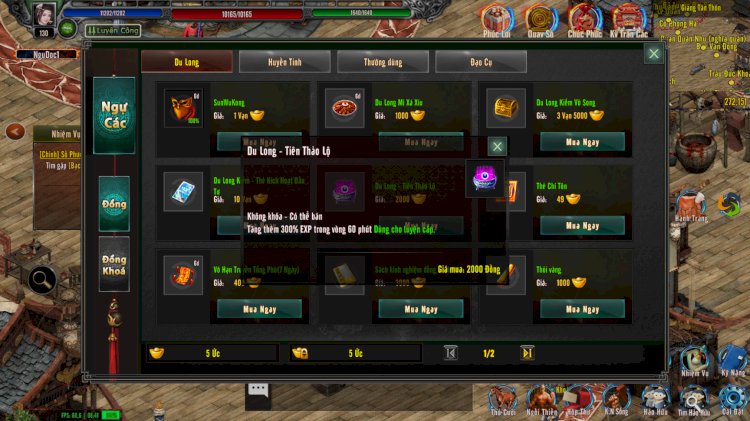 Mua Du Long – Tiên Thảo Lộ trong Kỳ Trân Các giúp tăng 300% EXP trong vòng 60 phút