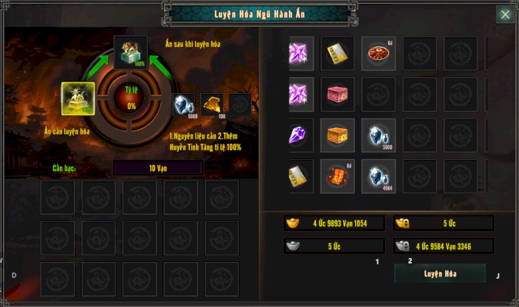 - Mở tính năng luyện hoá HOÀNG KIM ẤN - CHU TƯỚC ẤN - THANH LONG ẤN