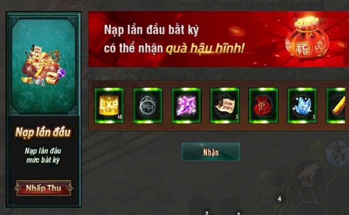 - Tăng thêm phần thưởng EXP khi nạp lần đầu