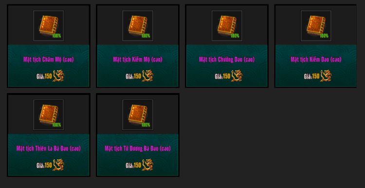 - Mở bán mật tịch TRUNG & CAO của 3 môn phái: Bá Đao, Tiêu Dao, Cổ Mộ