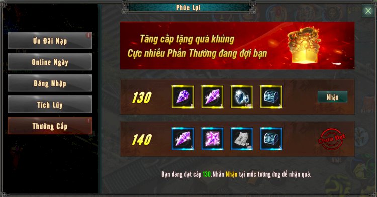 Tại Mục Thưởng Cấp sẽ hiển thị các mốc thưởng cấp
