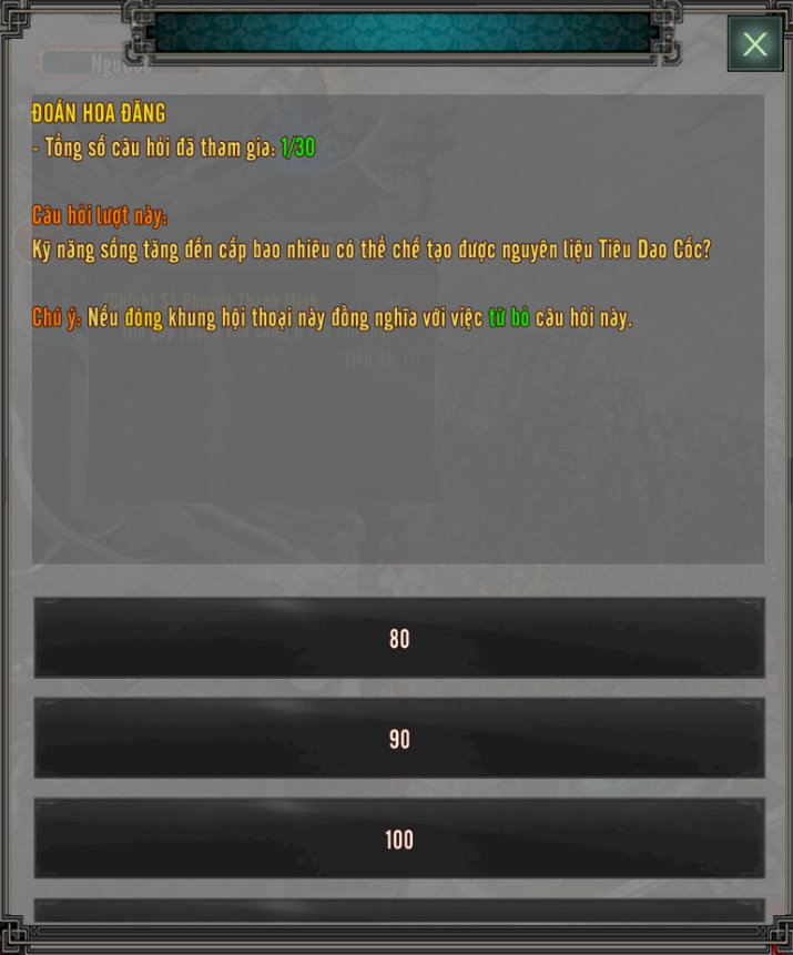 - Có tổng cộng 30 câu hỏi, trả lời đúng sẽ nhận kinh nghiệm, bạc khoá, đồng khoá và điểm Uy Danh.