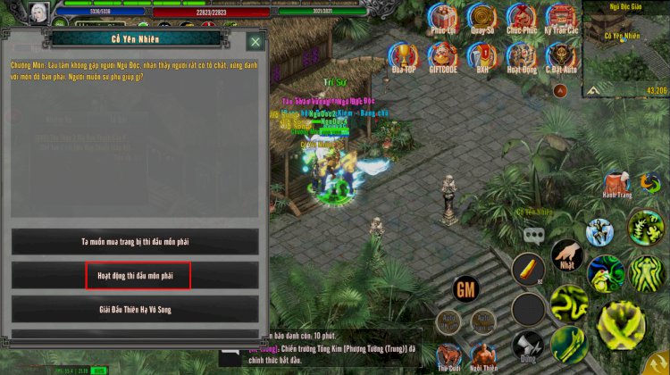 - Người chơi môn phái nào, đến Chưởng Môn của môn phái đó để đăng ký thi đấu.