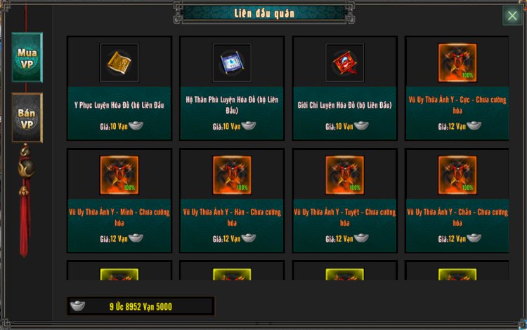 Thi đấu tích điểm danh vọng Võ Lâm Liên Đấu sẽ được mua các trang bị và đồ luyện hoá