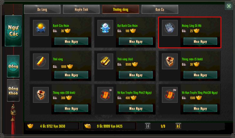 Vào Kỳ Trân Các mục Thường dùng chọn mua Hoàng Lăng Cổ Mộ giá 25 Đồng