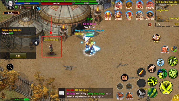 Khi kết thúc lại gặp NPC Quan Quân Nhu trong map Chiến Trường để nhận thưởng