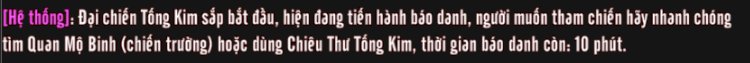 Sắp đến thời gian mở Chiến Trường Tống Kim hệ thống sẽ thông báo